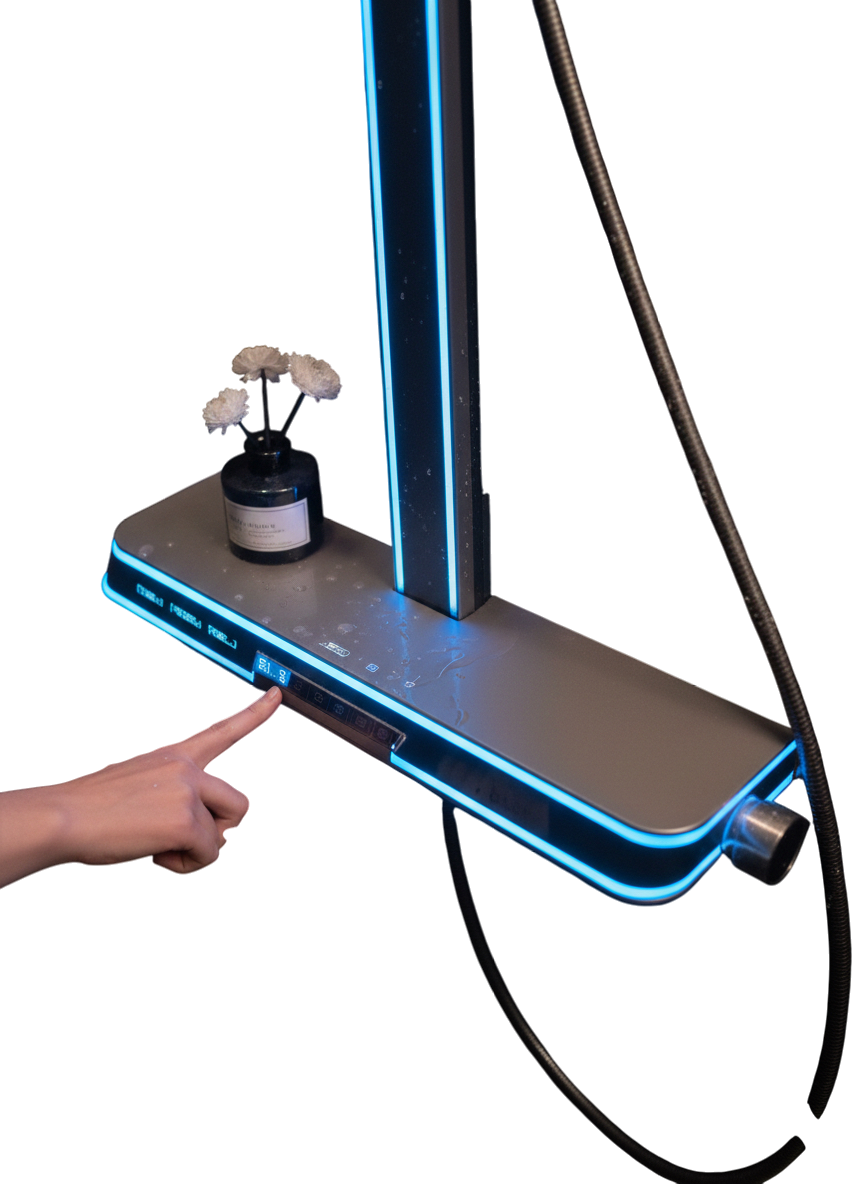 Banyo keyfinizi teknoloji ve konforla buluşturun. Yeni nesil dijital ekranlı duş sistemi, suyun sıcaklığını anlık olarak takip etmenizi sağlarken, geniş yağmurlama başlığı ile spa etkisi yaratır. Piyano tuşlu kontrol paneli sayesinde duş modları arasında geçiş yapmak hiç olmadığı kadar kolay.